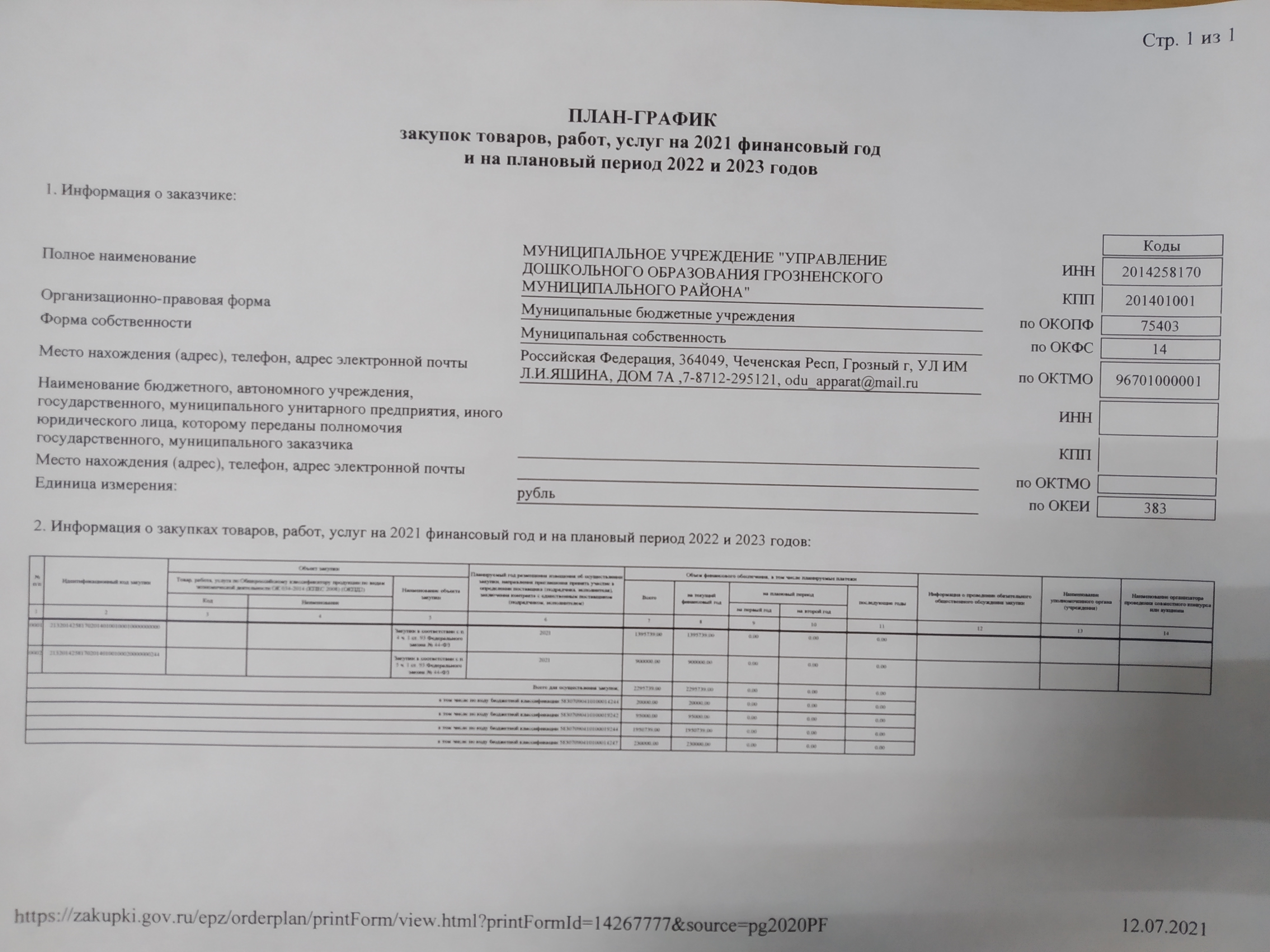 Приказ "О закреплении муниципальных бюджетных образовательных учреждений, подведомственных управлению образования Грозненского муниципального района, за территориями Грозненского района" (2021 г.)